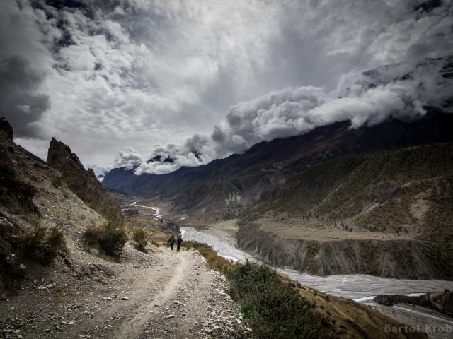 Nasz kolejny postój znajdował się niewiele dalej. Podążałem bardzo wolno wzdłuż rzeki Marsyangdi w kierunku Manang. Na trasie spotkałem dwie Francuzki oraz ich przewodnika. Spokojnie rozmawialiśmy przez kilkanaście minut. Wreszcie jako ostatni dotarłem do miasta, które przywitało mnie równie gościnnie, co inne miejscowości.