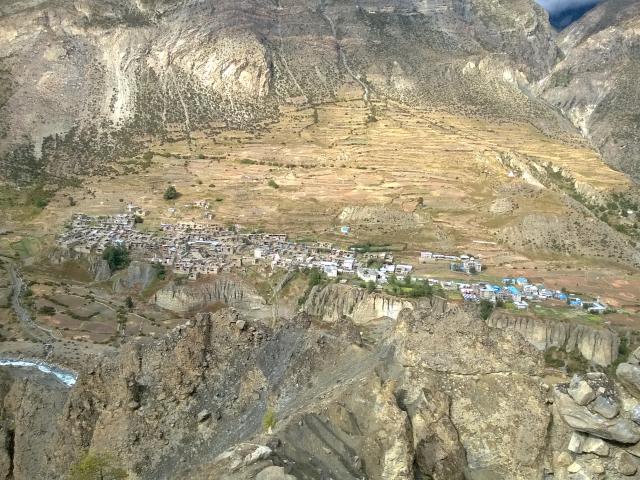 Poszliśmy jeszcze wyżej. Kolejne kilkaset metrów wzdłuż grani oraz dalej przez las zajęły nam około godziny. Następny widok zrobił na nas jeszcze większe wrażenie. Manang z tego miejsca był niewielkim skupiskiem domostw w oddali. Ośnieżone szczyty mimo, że nieco bliżej ciągle były niedostępne. Robiło się poźno, a ciągle czekał nas powrót do miasteczka.