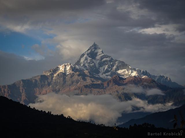 Kiedy wyszedłem na taras powalił mnie widok. Słońce przebijało się przez chmury, które zasłaniały Dhaulagiri. Wiał lekki wiatr i odsłaniał coraz większe pasmo górskie.
